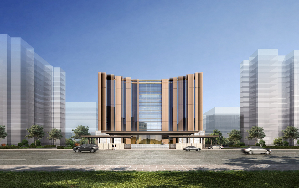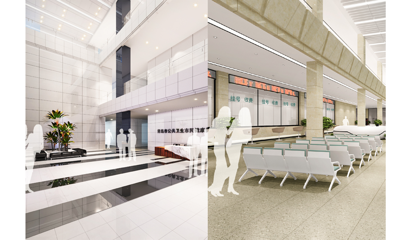 結(jié)合周邊的環(huán)境和節(jié)省造價的因素綜合考慮,建筑立面為干凈簡潔的現(xiàn)代風(fēng)格,臨床中心以橫向線條為主,公共衛(wèi)生中心以豎線條為主,市民健康體驗(yàn)中心強(qiáng)調(diào)建筑的標(biāo)志性;建筑平面主要解決不同功能的區(qū)域劃分和避免流線交叉的問題。