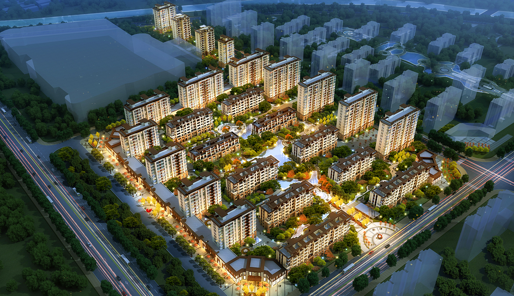 通過對基地場地價值的分析,綜合考慮容積率、建筑密度及航空限高等問題,以小高層住宅、花園洋房、疊拼別墅結合考慮規劃布局。景觀主要應以內部打造為主。建筑布局外高內低,將多層產品放在中間較好的位置,同時形成建筑高度向中心景觀帶疊落的空間感覺,最大化利用中心景觀帶。