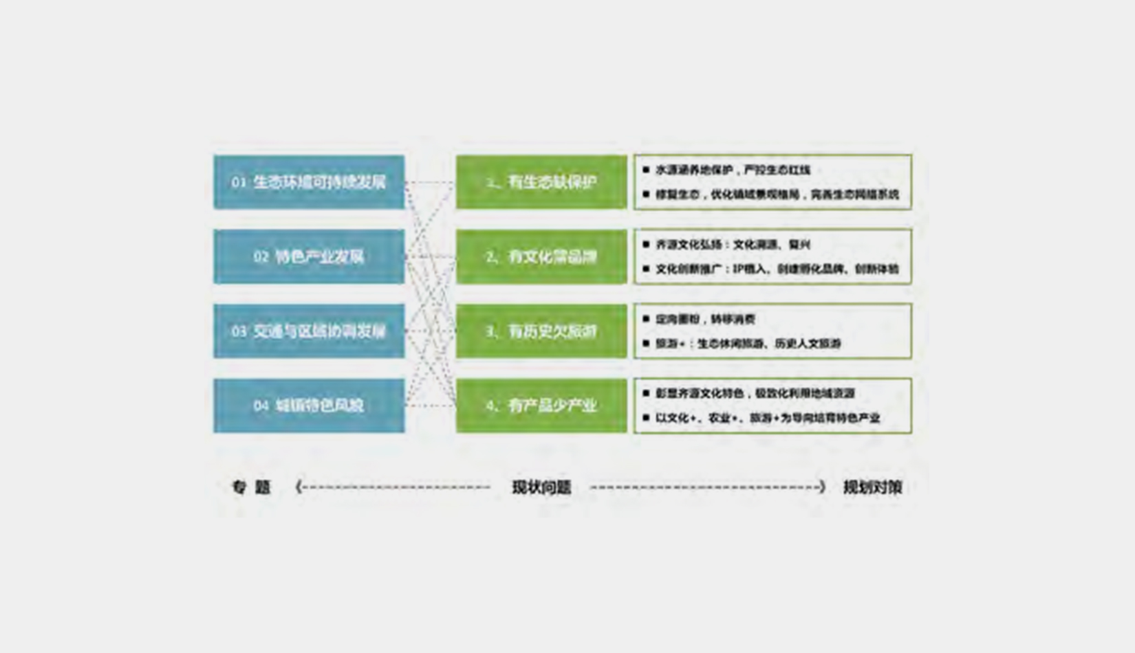 發展策略: 生態環境可持續發展、齊源文化復興、基礎產業提升、基礎設施完善、公共服務提質特色產業體系: 凸顯營丘齊源文化特色,轉化、極致化利用地域特色資源,以”文化+“、”農業+“、”旅游+”為特色產業培育導向,完善、提升產業鏈價值鏈,構建一個特色鮮明、主題明確的特色產業體系。