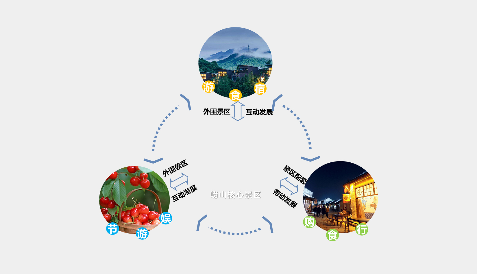 項(xiàng)目規(guī)劃目標(biāo):在國土空間規(guī)劃、生態(tài)修復(fù)城市修補(bǔ)背景下,重新定義村莊發(fā)展格局;依托嶗山風(fēng)景區(qū)旅游品牌、聲譽(yù)、影響力,培育村莊獨(dú)特的旅游景點(diǎn)、活動項(xiàng)目,吸引外圍景區(qū)游覽客群;在旅游游線、服務(wù)設(shè)施、活動項(xiàng)目等方面,充分與嶗山主景區(qū)互動,打造分工明確、各有側(cè)重、各俱特色的旅游服務(wù)村落集群。