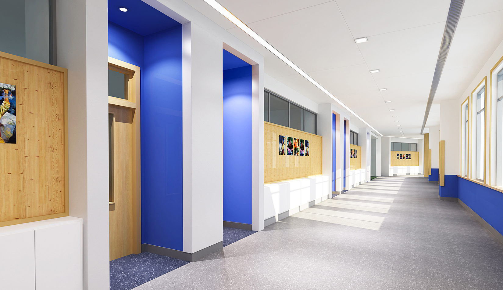 設計追求空間設計的前瞻性,深入揣摩材質、工藝與造型之間的關系,力圖體現現代化小學空間輪廓;設計堅持以“人”為本的校訓,強調人性化設計,因此注重生態、綠色、節能、環保、文化空間功能,輔以材質、色彩的表達,為寧夏路小學營造出了人性的、功能的、標志化效果,為孩子創造-一個良好的視覺環境和心理健康發展的氛圍。