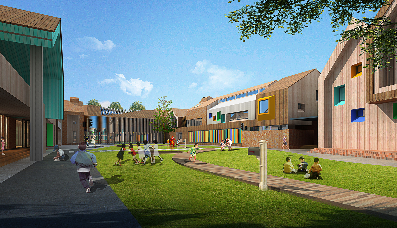 該項目設計以“陽關小鎮”為設計概念,采用“城鎮”規劃布局,通過引入街道、廣場、庭院等元素,將校園空間打造為小鎮場景,讓學生感受城市氛圍及生活氣息。