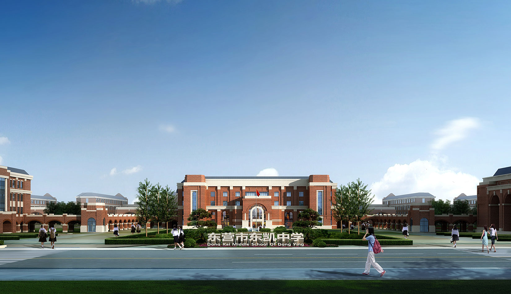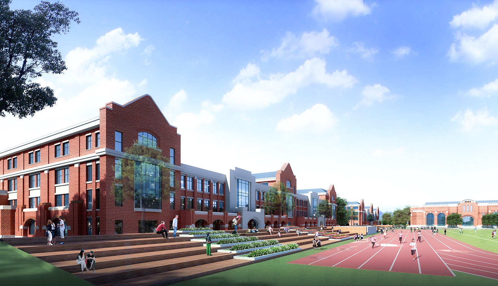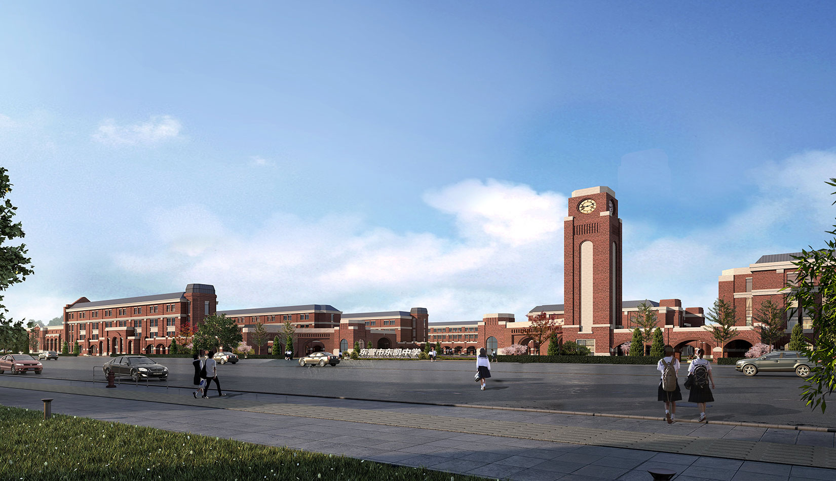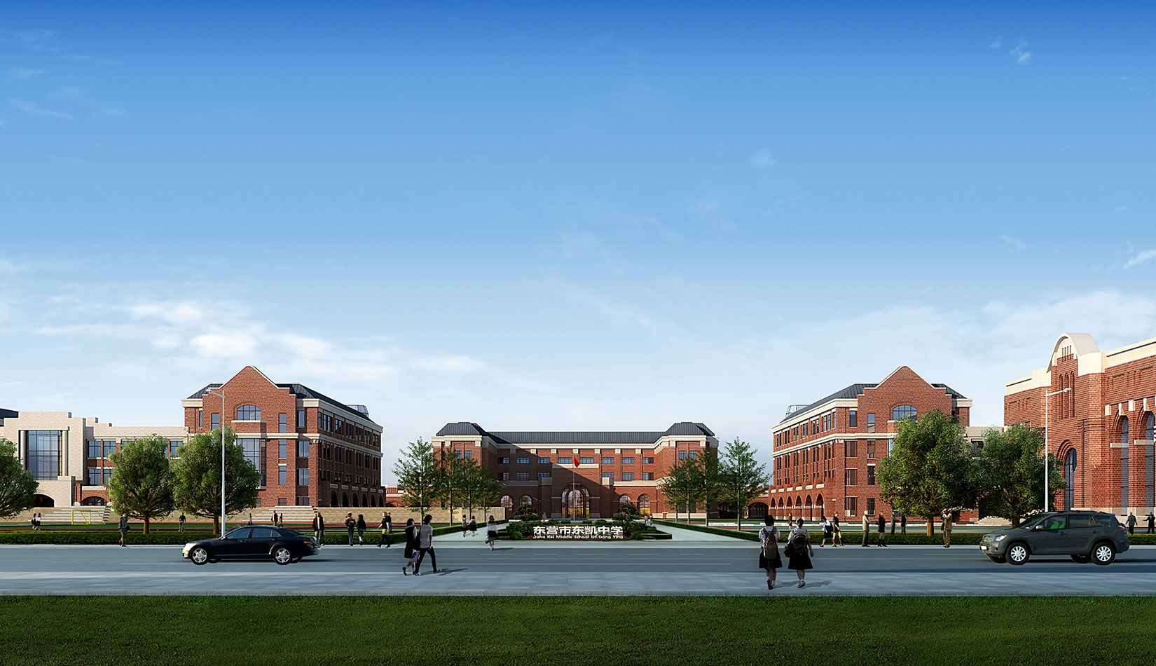 學校規劃設計中采用了中國傳統書院式軸線布局,將各個功能單體通過特有的風雨廊聯系起來,形成了一個完整的有機整體,避免了傳統學校布局呆板、流線冗長的缺陷。風格方面采用了古典學院派的建筑風格,著力塑造厚重的學院氣氛,力求打造百年名校的文化理念。綠色建筑方面,通過設計中利用被動式的節能技術策略,力求打造省內乃至國內領先的綠色二星級校園建筑。