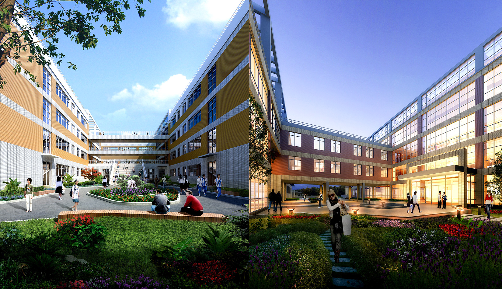 通過對功能、流線的科學整合與單體建筑的精心設計,運用現代的建筑語言營造富有強烈時代感的校園環境,并不斷探索開放、和諧、人文的校園設計策略,使建筑體現時代特征。