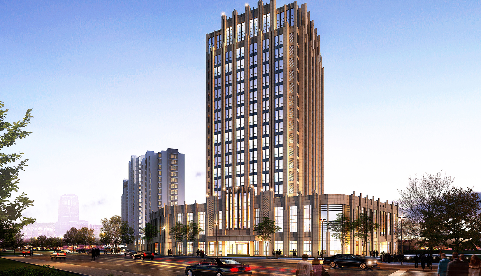 建筑風格采用新古典主義建筑風格,力求營造莊重、威嚴的城市建筑風格。