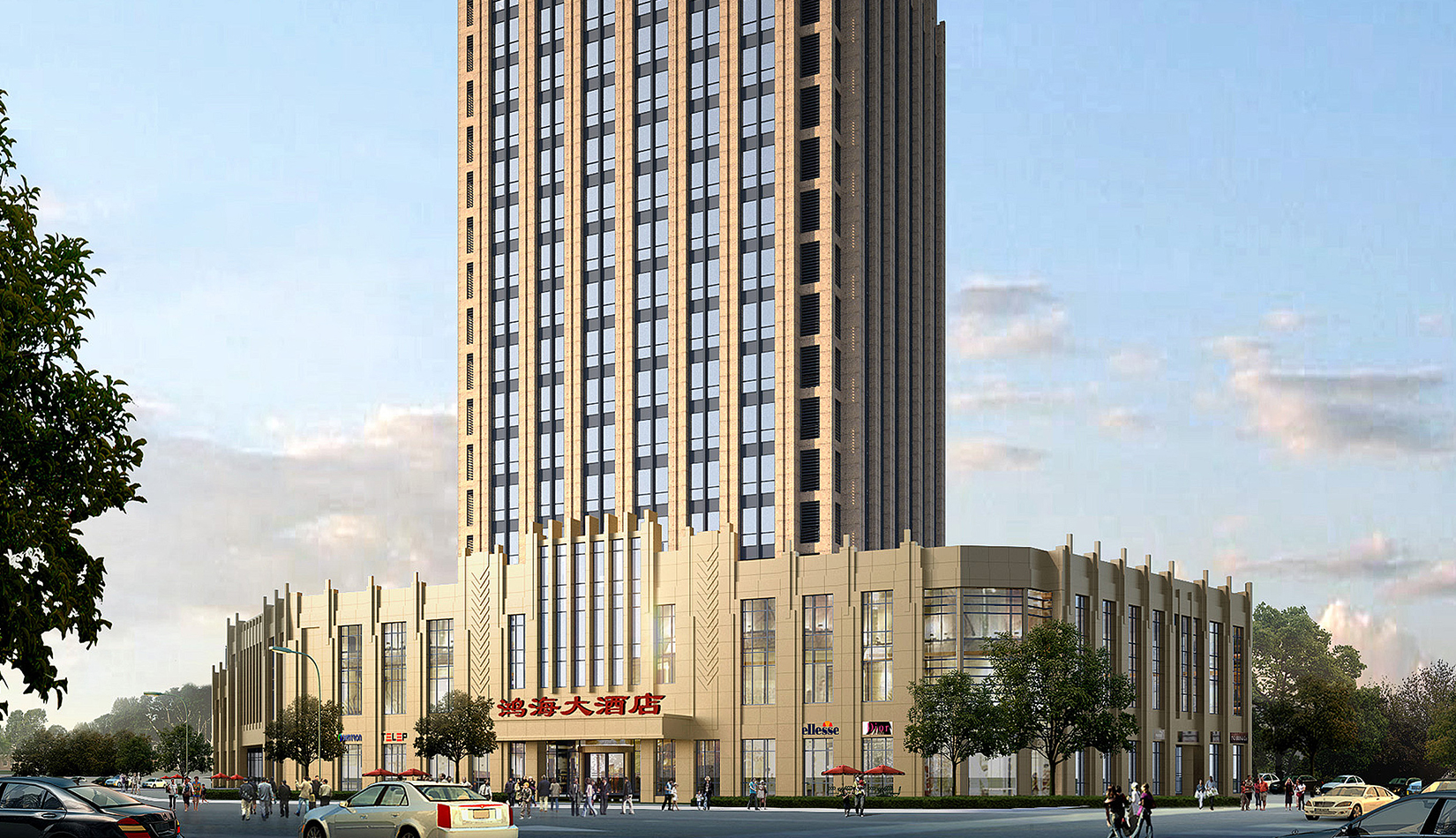 項目于四方區三叉路口,地理位置優越,酒店臨街重點營造建筑的城市感和交通便利。