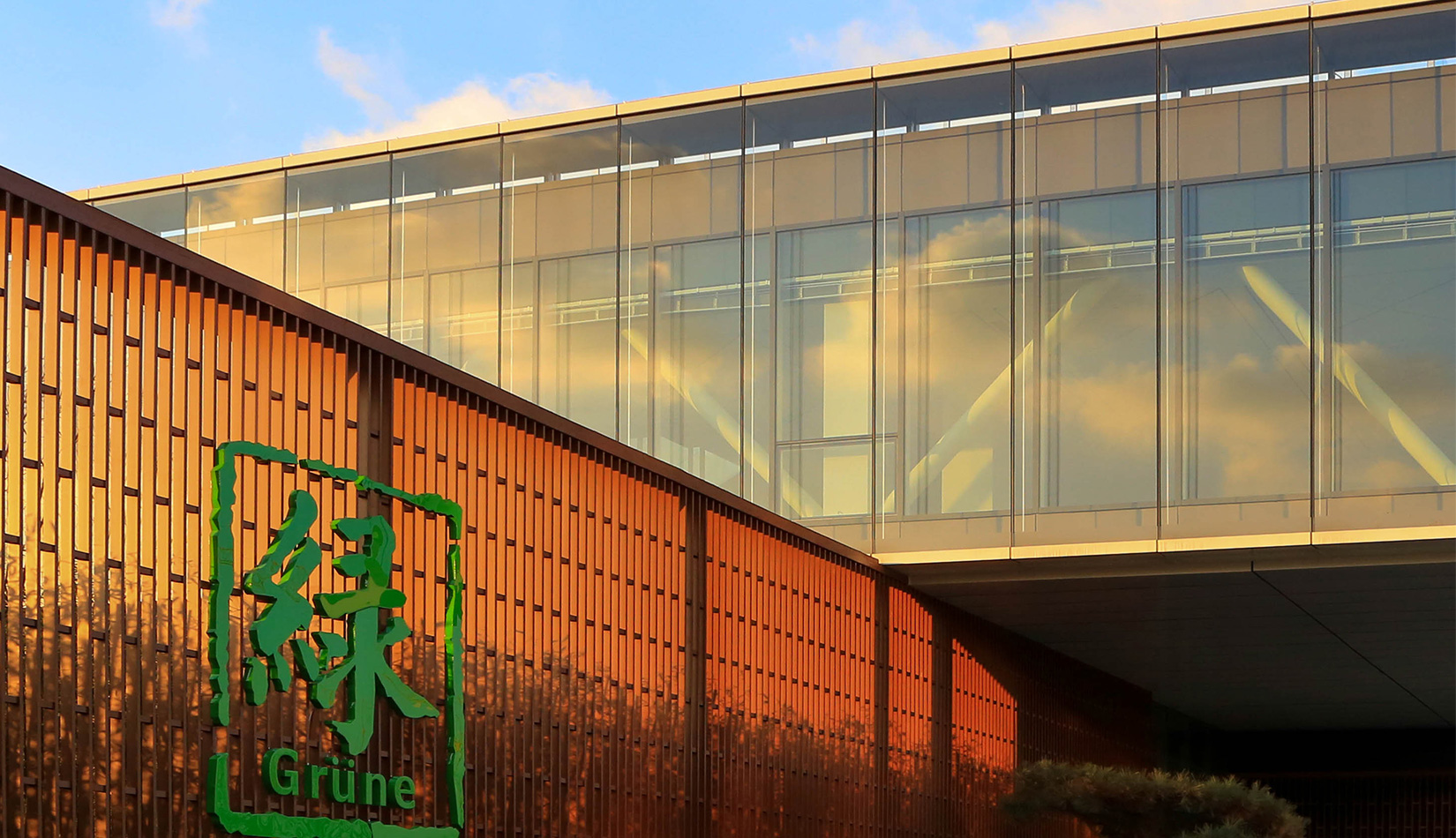 方案簡潔明快,追求德國品質(zhì)。簡潔的形體、精致構(gòu)件、木質(zhì)表皮、屋頂綠化、獨(dú)立庭院共同打造方案特色。主入口處玻璃體量懸挑形成入口空間,景墻與建筑融為一體。建筑大面積純凈的玻璃與木材表皮的組合給人自然、舒適之感。