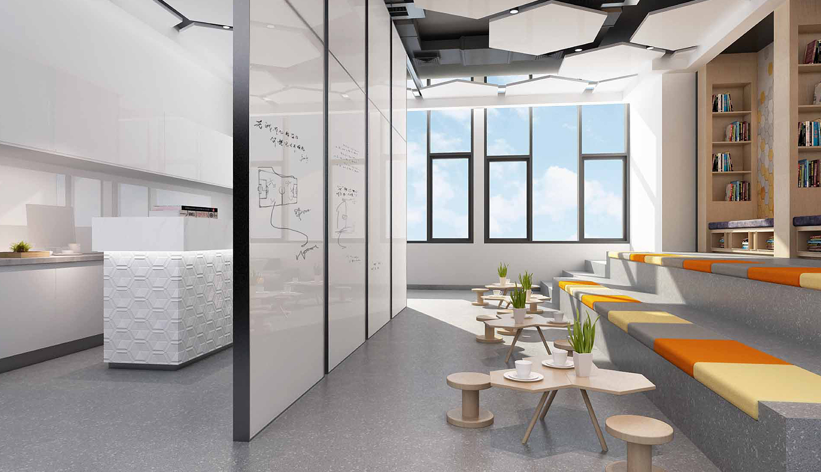 前臺營造一種開放式的交流空間,為入住者提供一個(gè)充滿活力的社交空間、資源共享空間、閱讀空間,包括水吧、讓你放松的圖書館,還可承辦各種活動,時(shí)尚的設(shè)計(jì)以及獨(dú)特的個(gè)性,便于大家面對面溝通和社交體驗(yàn)。