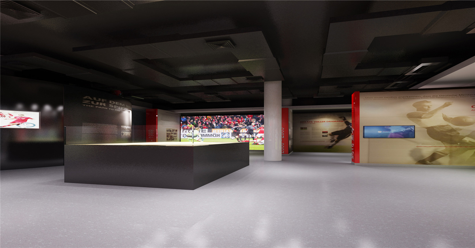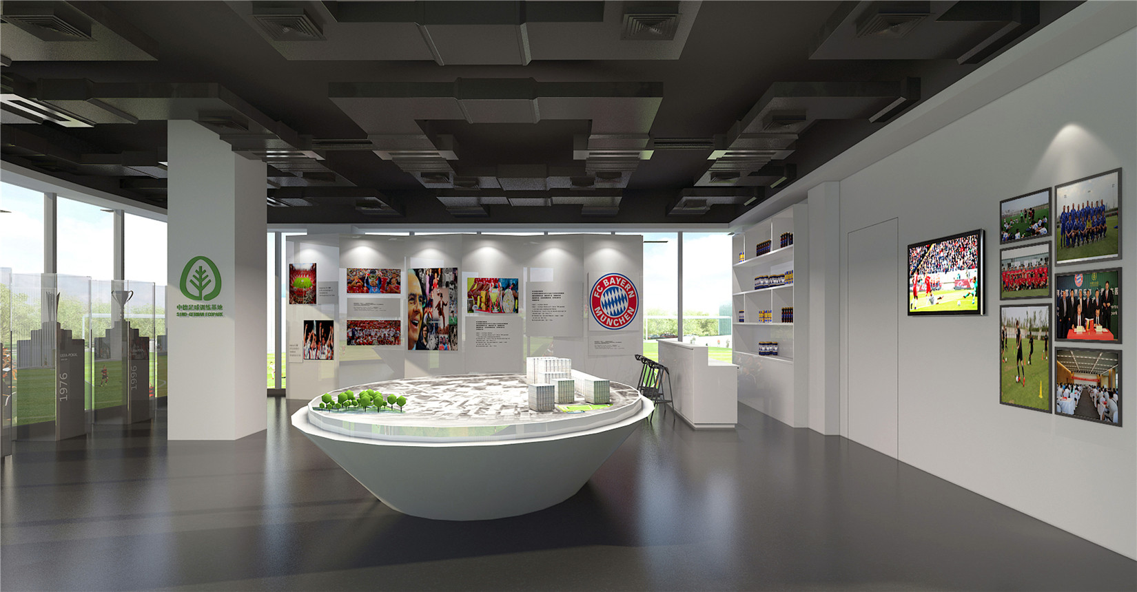 本次設計方案運用后現代主義風格的設計手法來展現中德兩國足球運動的歷史及發展。迎合當前環境下中德兩國在足球產業方面進行的交流與合作,是中德體育促進足球培訓、商務推廣的窗口平臺,向人們展示足球精神的人文內涵與魅力。